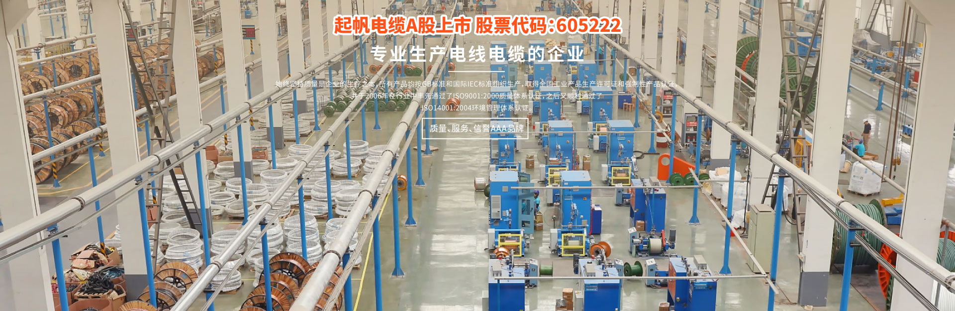 上海起帆电缆股份有限公司,公司是生产电线电缆的专业骨干企业,公司成立于1994年,经过24年的风雨历程,现已成为拥有面积350000平方米,拥有高中级技术员120多人,年生产能力近80亿人民币的规模企业。公司产品有各类高低压电力电缆,电气装备用电缆和通信电缆,主要产品规格有:聚氯乙烯电力电缆、交联氯乙烯电力电缆、低烟无卤环保型、耐火电力电缆、控制屏蔽型电缆、橡套电缆及预分支电缆等,上千种规格。